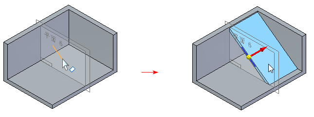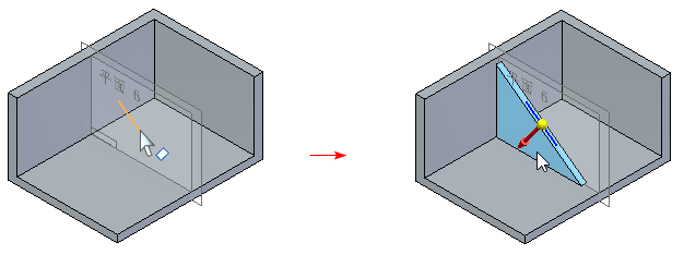 示例:定义筋轮廓的拉伸方向 轮廓可以朝两类方向拉伸: 平行于轮廓平面的方向 垂直于轮廓平面的方向 红色箭头指示拉伸方向。通过移动光标到合适的位置,来更改拉伸方向。对于上图中的示例,在指定有限深度后,可以在垂直于轮廓平面的另一方向进行拉伸。