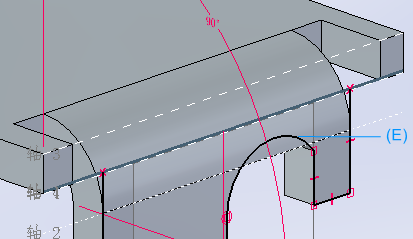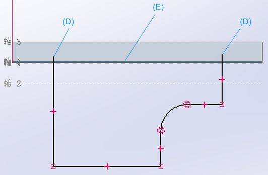 - 如果轮廓线(E)位于这个区域内,则不会被处理,弯边会延伸至构造线。