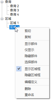 在选择工具窗格中右键单击一个已命名的区域条目时,以下快捷菜单命令将可用。