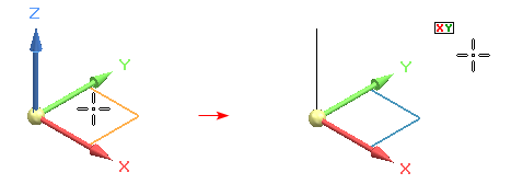 在锁定的平面工作时,图形窗口右上角会显示