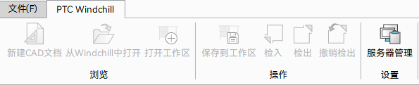 - 从功能区 PTC Windchill 选项卡访问客户端功能。