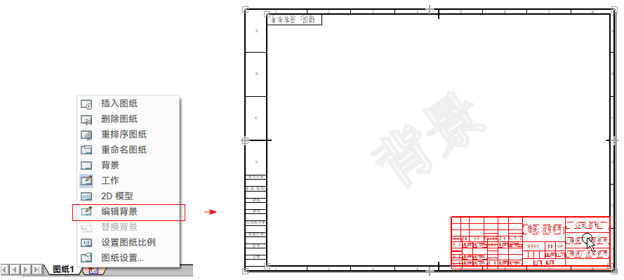 在背景图纸,可以对标题栏的内容进行修改。例如,您需要制作符合企业标准的标题栏。