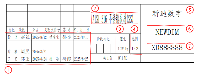 ⑥和⑦ 分别引用文件属性中的图纸名称和图纸代号的值。