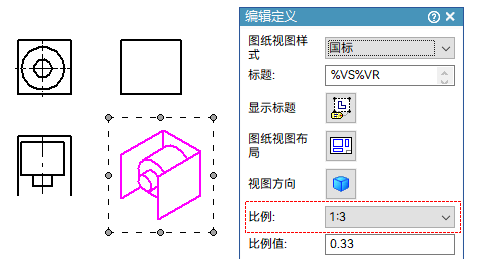- ④ 引用的是 零件1.par 的图纸视图比例。
