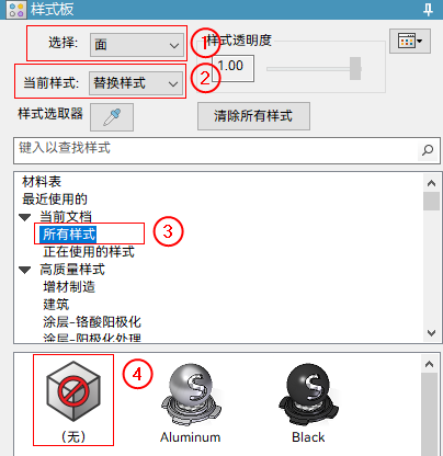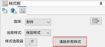 或(使用零件样式)作为替换样式应用到模型中的元素,以达到清除样式的效果。