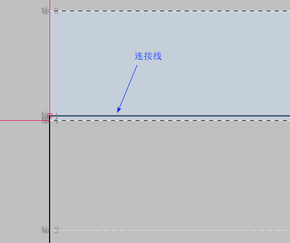 下图所示为区域 I 的放大图,其中,轴 1 是连接线,轴 2 是构造线;轴 3 和轴 4 是钣金件附着边(厚度边)在当前轮廓平面的投影参考线。