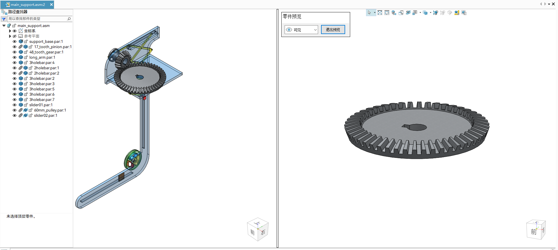- 在零件预览窗口,可对零件进行视图预览及添加配合关系。Note: