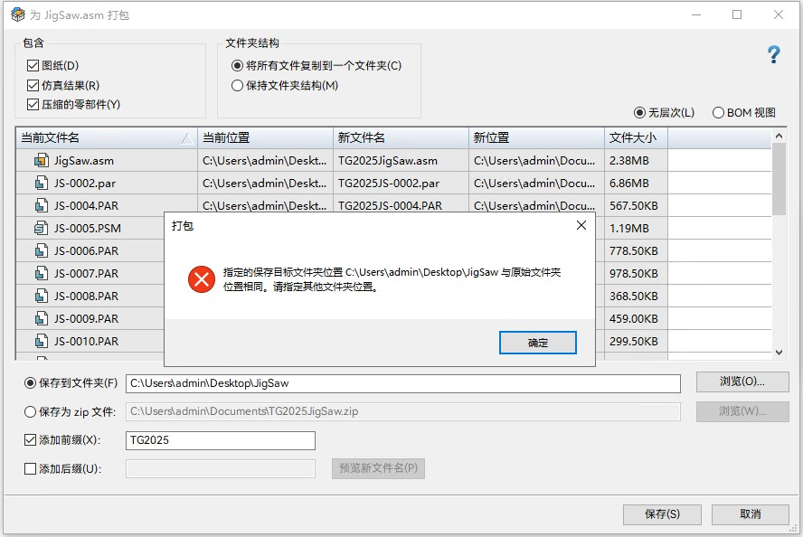 现在,目标路径的设置已优化。当所有待打包文档都已重命名(添加前缀、添加后缀或在新文件名单元格双击进行修改)时,目标路径可以设置为原始路径。