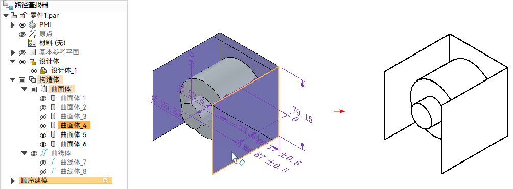 - 现在,构造体(例如曲面体、曲线体)和设计体一样,可以在图纸视图中显示。以前,图纸视图不显示构造体。