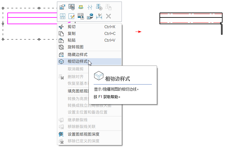 图纸视图右键菜单增加相切边样式命令