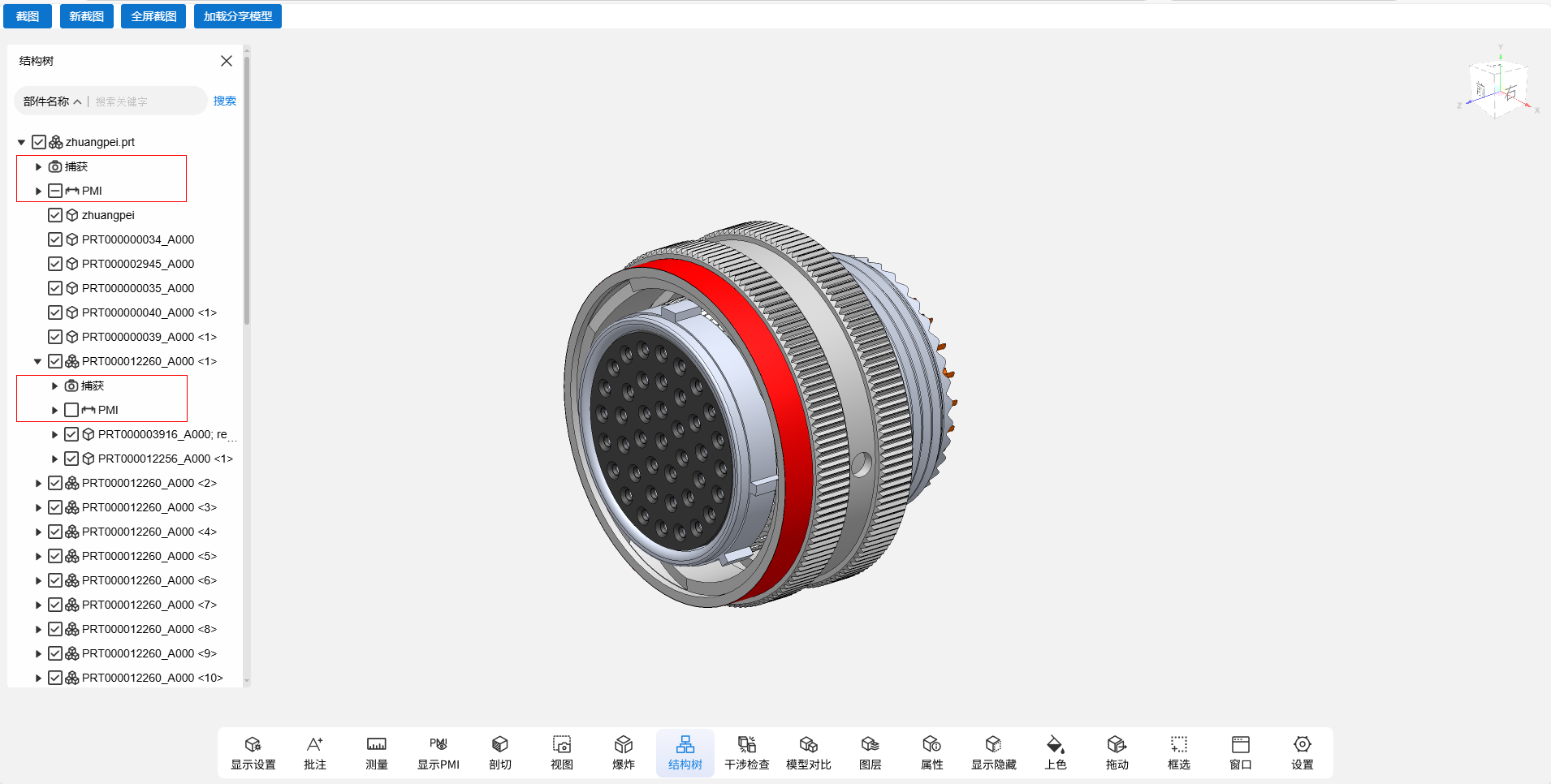 - 预览路径:在轻量化预览页面中,导出的 PMI 位于轻量化预览页面→结构树→ PMI
