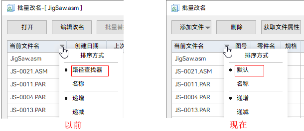 - 添加已选中文件时,同一个装配中的文件按其在路径查找器中的位置排序。